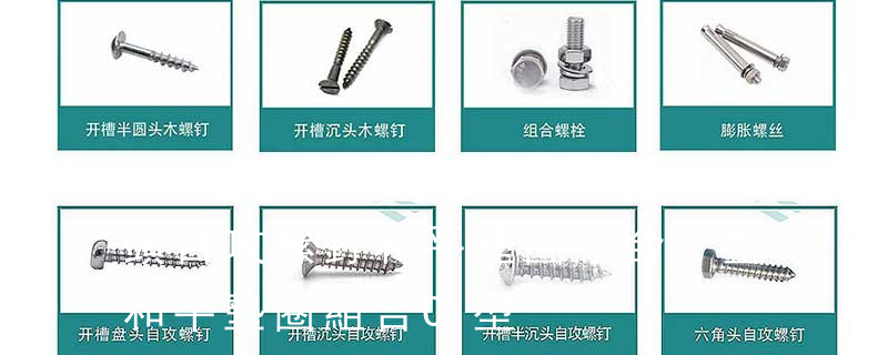 螺栓有:1、方頭螺栓,2、半圓頭方頸螺栓,3、十字槽盤頭螺釘,4、內六角沉頭螺釘,5、方螺母C級,6、蝶形螺母,7、六角頭螺栓,8、十字槽盤頭自攻螺釘。大小有M18、M6、M8、M16、M10、M12、M14、M20等型號。通常用