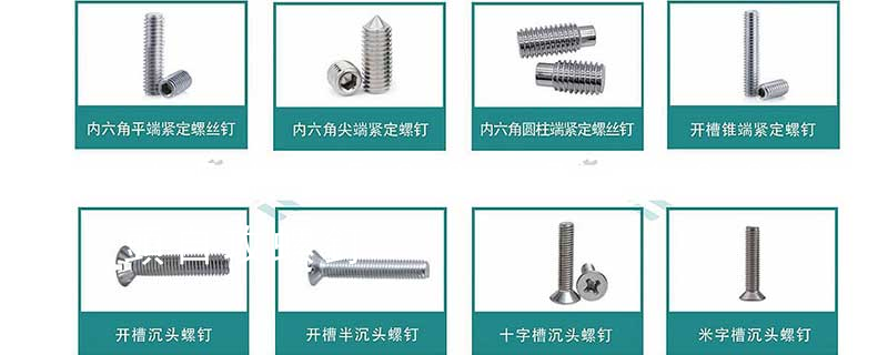 1)開槽普通螺釘多用于較小零件的連接。它有盤頭螺釘、圓柱頭螺釘、半沉頭螺釘和沉頭螺釘。盤頭螺釘和圓柱頭螺釘?shù)尼旑^強度較高,瑁在普通的部件連接上;半沉頭螺釘?shù)念^部呈弧形,安裝后它的頂端略外露,且美觀光滑,一般用