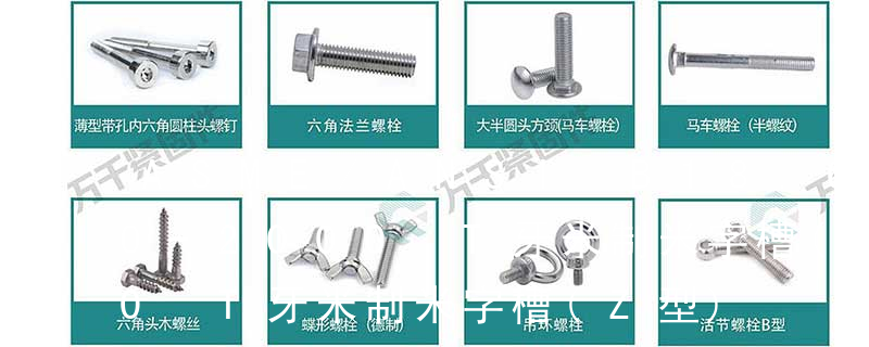 B:球面圓柱頭; C:圓柱頭; F(K):沉頭; H:六角頭;HW:六角頭帶墊圈; O:半沉頭; P:平元頭; R:半元頭;PW:平元頭帶墊圈; T:大扁頭; V:蘑菇頭;④ 螺釘牙型 A:自攻尖尾(日標(biāo)第1種)疏 主要分類包括普通螺絲、機(jī)螺絲、自攻螺絲和膨脹螺絲三種。 有頭螺釘Cap screw 過(guò)去限于全牙的扣件。 六角頭螺釘Hex cap screw與大六角螺栓Hex bolt 顧名思義為頭部為六角型的外螺紋扣件,設(shè)計(jì)為使用扳手轉(zhuǎn)動(dòng)。依照ASME B18.2.1標(biāo)準(zhǔn),六